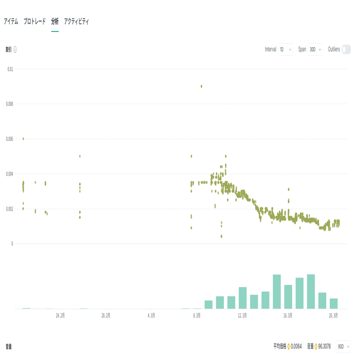 総Mint数の1/3を占めていたので、フロアも暴落、1/4くらいになりました。これではほぼ慈善事業です。