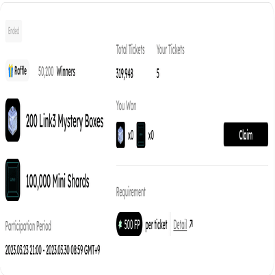 Yuliverseの箱で儲かったので、他の箱はないか、と思ってLink3の箱をMintしまくるために、チケットを500アカx4くらい錬成しましたが、BANされたため純粋に損しました。