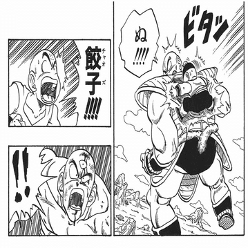 チャオズが仲間のために自らを犠牲にするのは初めてではない。一度目の死亡シーンでも、チャオズは仲間のために確信の無い行動に出ている。