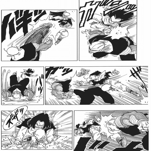 まずはピッコロのほうである。17号と互角であることはほぼ確実だが一応戦闘描写を見ていこう。