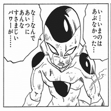 この後フリーザは怒り、さっさと殺して戦いを終わらせようとするのだが、それは悟空が一瞬でも自分と比肩し、わずかでも上回ったことによる悔しさがあったのかもしれない。