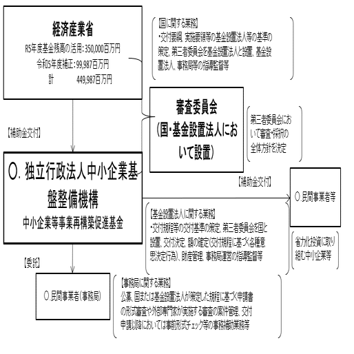 交付の基準策定や意思決定行為等も含めた根幹的な業務は中小企業庁及び中小機構で行う。
