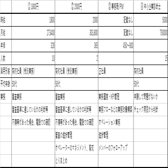 4つの求人を並べてみると次の表のようになります。