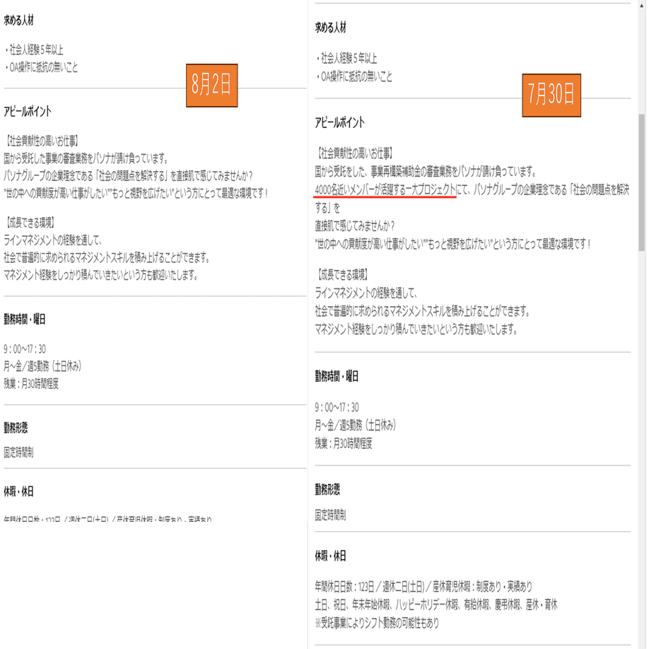 現時点(8/2)に確認できた求人広告は4件ありました。