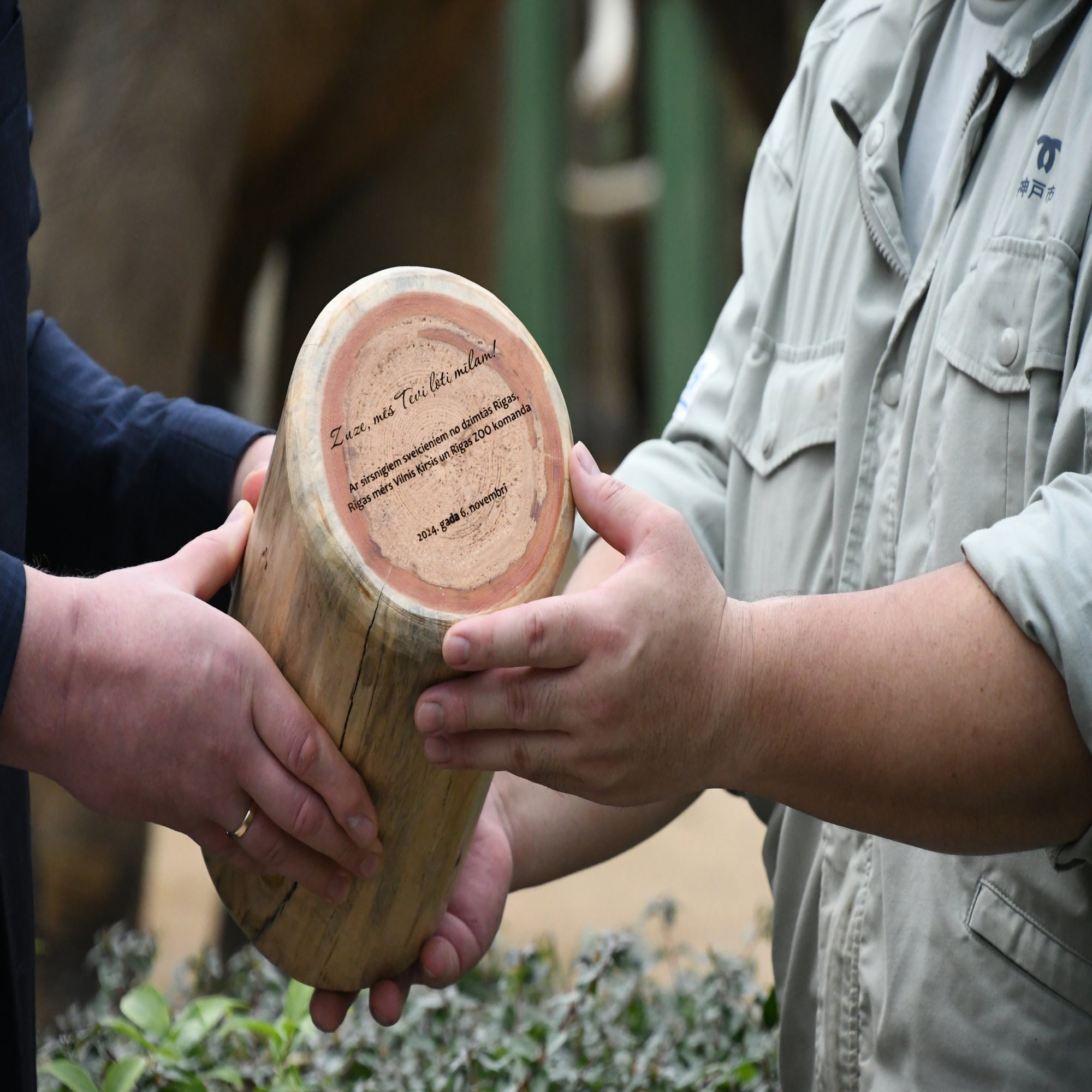 その話をリガの人たちは覚えていました。そして、キルスィス市長が神戸に行くのであれば、ズゼが生まれたリガ動物園やリガの人々から、新たな丸太を贈ろうという話になったそうです。