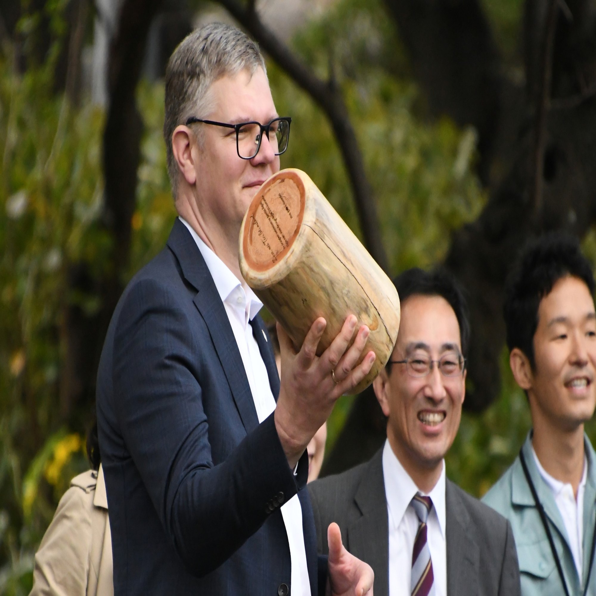 市長が丸太を持ってきたワケ