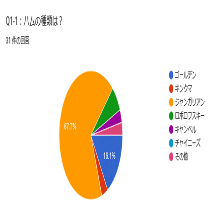 種類はジャンガリアンが圧倒的でした(21票)。次点のゴールデン(5票)との差は約4倍で、ゴールデン・キンクマ連合をもってしても21対6という大差だったのは驚きです。