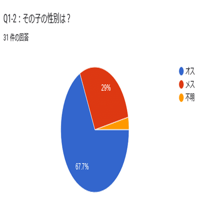 性別を見てみますと、これまた圧倒的な差でオスが多かったです。ハム飼いの皆さん、やっぱりあのプリプリのたまたまがお好きなんでしょうか? いや、玉玉ではなく偶々だとは思いますが、「なぜその性別を選びましたか?」も質問しておけばよかったかもしれません。