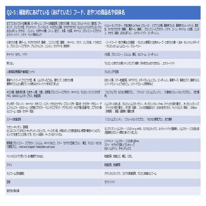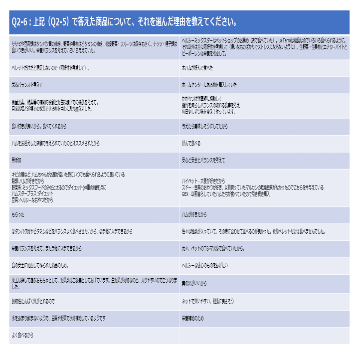 続いて、Q2-5で挙げた補助フードを選んでいる理由を見てみます。