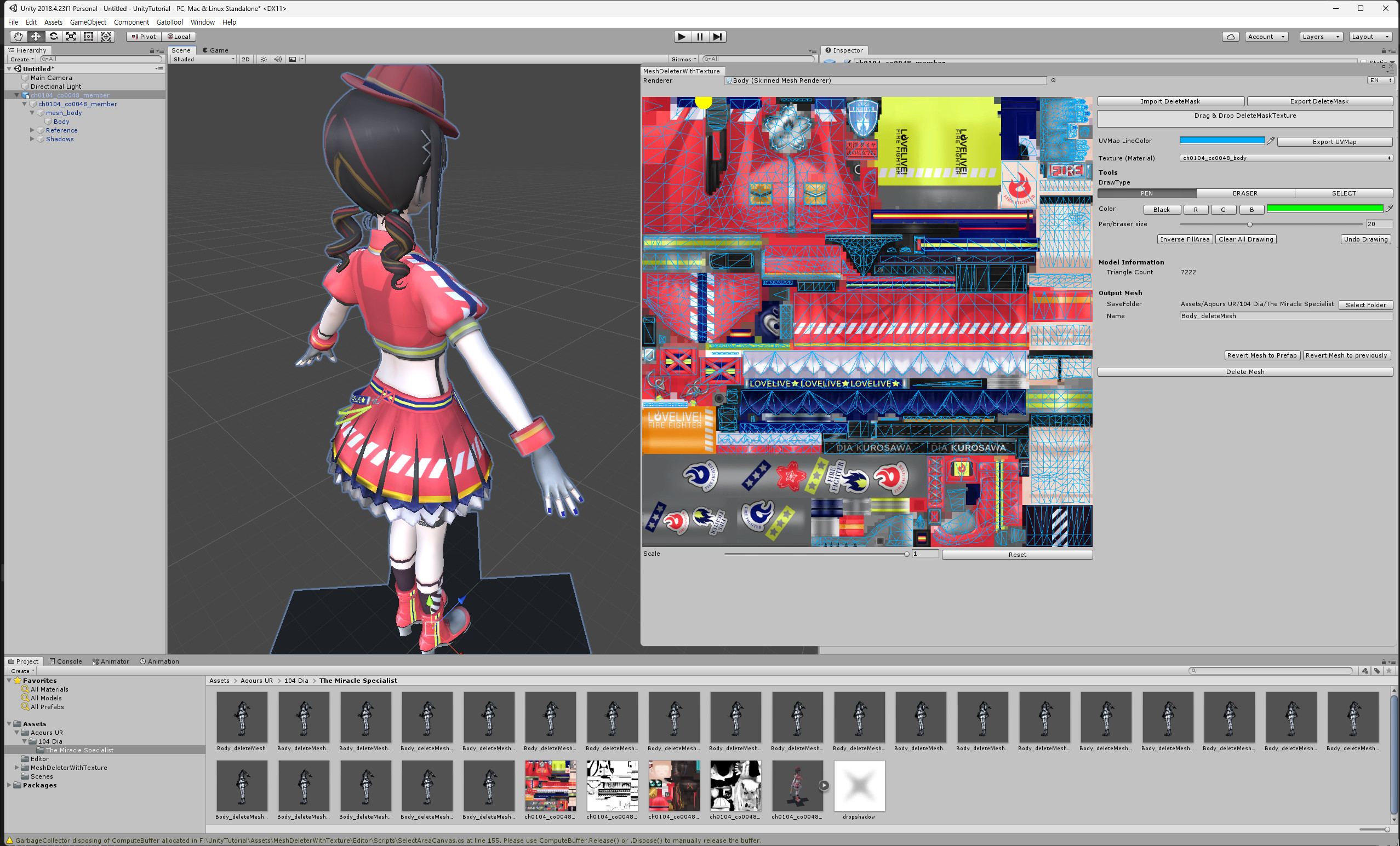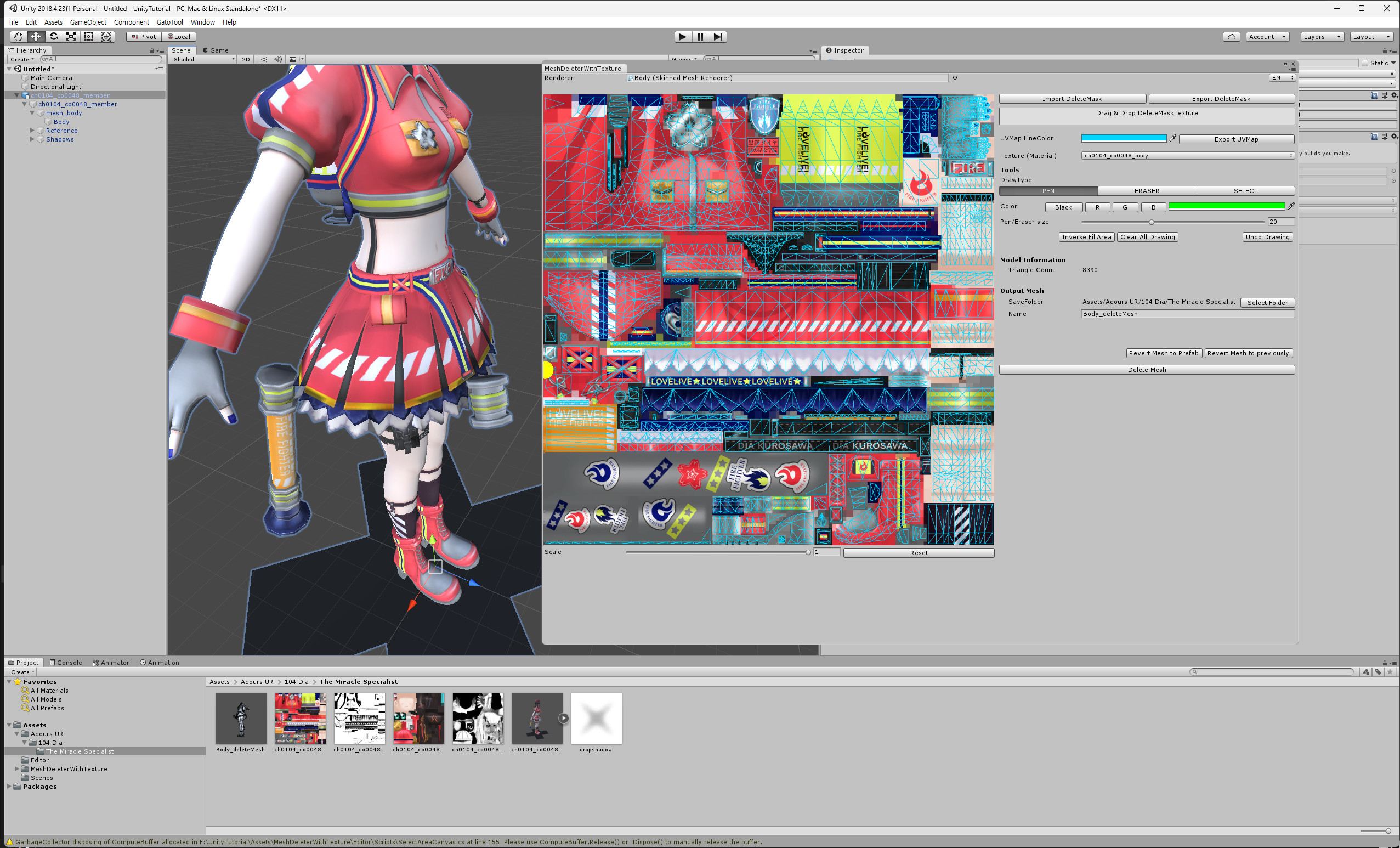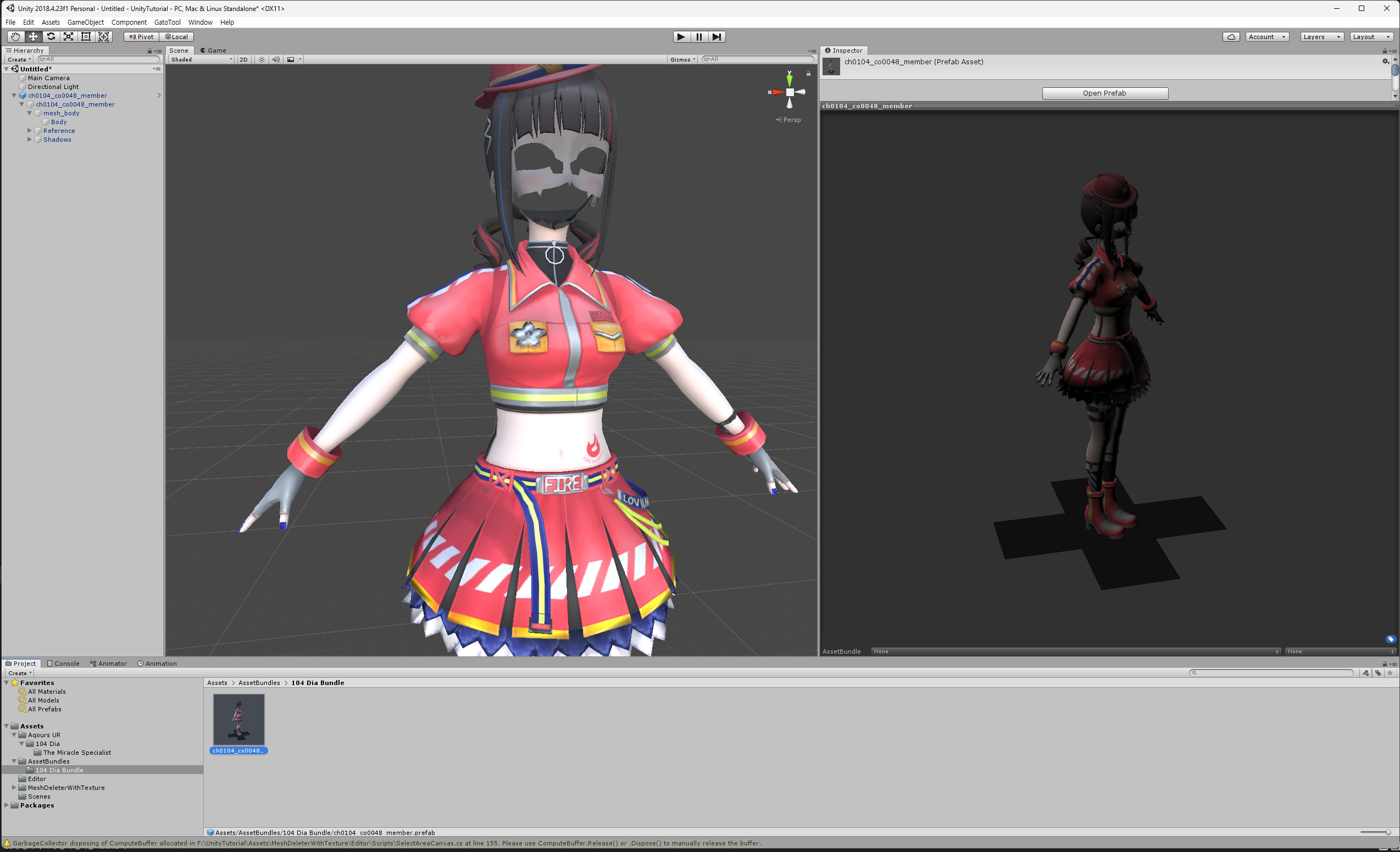In the Hierarchy, click the ▶ next to ch0104_co0048_member to expand it, and you'll see body. Drag it into the Renderer field in the MeshDeleter With Texture window.