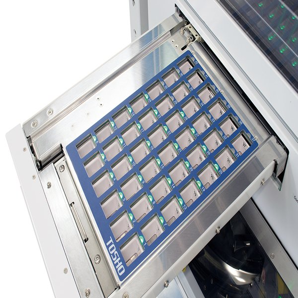 手巻きとは、簡単に言えば薬を自動分包機の『コンベア』と呼ばれる部位のセル1つずつに手で入れていくことである。上記の画像にある小さい四角の穴に、PTPシートの薬を1錠ずつ入れていく作業の事を言う。