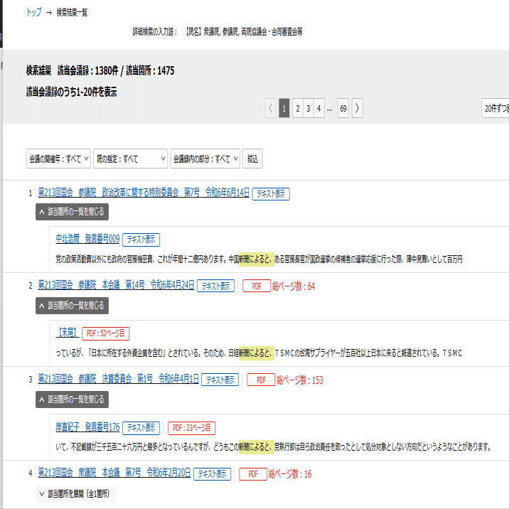 また国会は議事録をネット検索できる。「新聞によると」をキーワード検索すると1380件ヒットする。国会議員という最高意思決定者が新聞に載った情報を元に国会質疑を行っている。それは意思決定に影響を及ぼす。