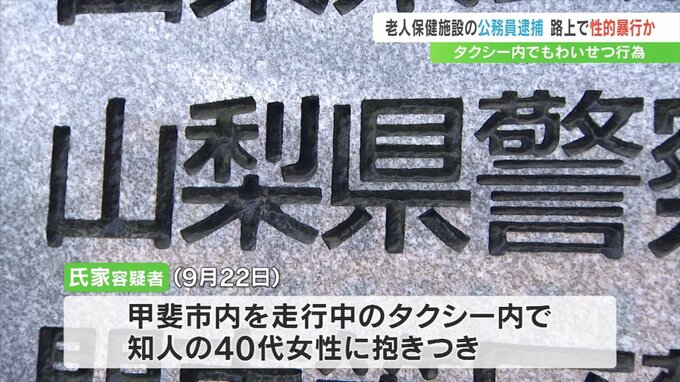 不同意性交などの疑いで逮捕されたのは、身延町の老人保健施設「峡南ケアホームいいとみ」に勤める地方公務員で甲府市新田町に住む氏家達也容疑者(50)です。