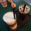 이 님은 수영모자 쓰고 커피타임.