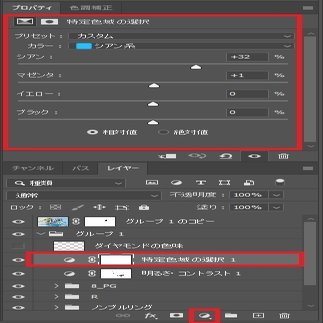 今回はPHOTOSHOPの「特定色域の選択」や「レイヤモード」を使いました。また、選択範囲を保存しておくのも、後々、編集がしやすいので良いと思います。