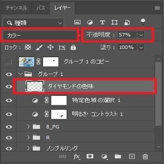 ★ここまで編集したレイヤーを「グループ1」としてグループ化し、1つのフォルダにまとめます。