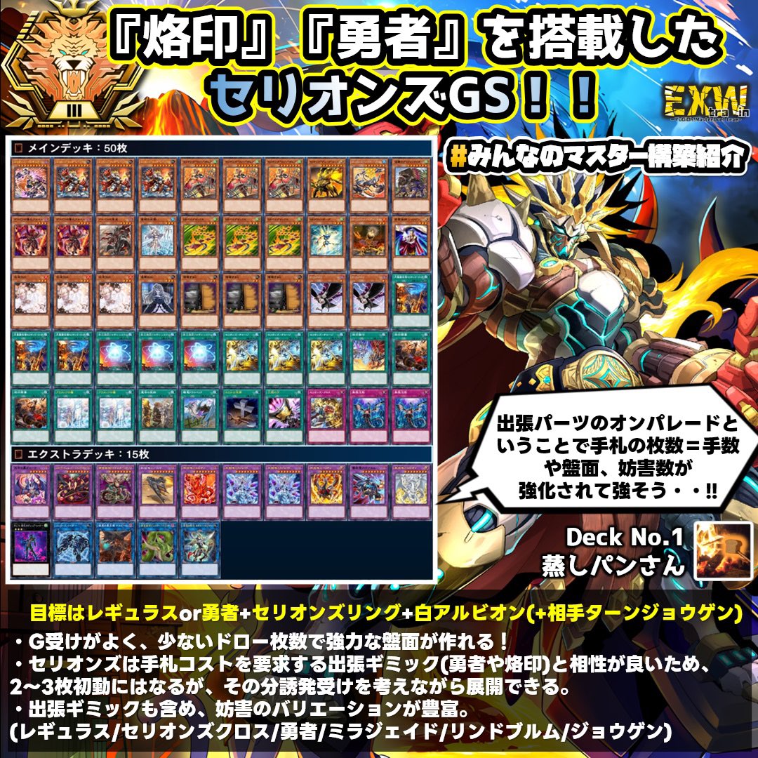 @EXW_MD 使用デッキ:ヴァリアンツ 到達ランク:マスター1 事故りすぎるので魔法族の里は抜き、多くのデッキに効くと考えて屋敷わらしを採用しました。 最初は抹殺用にドロバやニビルも入れてましたが、超重武者にそれほど当たらなかったのでラヴァゴ2枚に変更しました。 pic.twitter.com/9m5JOJLP3I