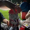 내 손 절대 안 놈❤️ 헷 근데 옷 다~~ ~ 갈아입고 나갔는데 풀장 무서워해서 그냥 잔디 밟기 놀이하다가 끝남