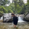 오빠가 물놀이하자며 아래 위로 옷까지 빌려줬는데 생각보다 여기 물은 너무 차가워따..