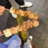 꼬지 하나 먹고 옆에 와플은 덤이여~~