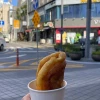 어느 시장으로 들어와서 ‘해운대 명품 호떡’ 이라는 가게에서 꿀호떡 하나 사서 사이좋게 나눠 먹고