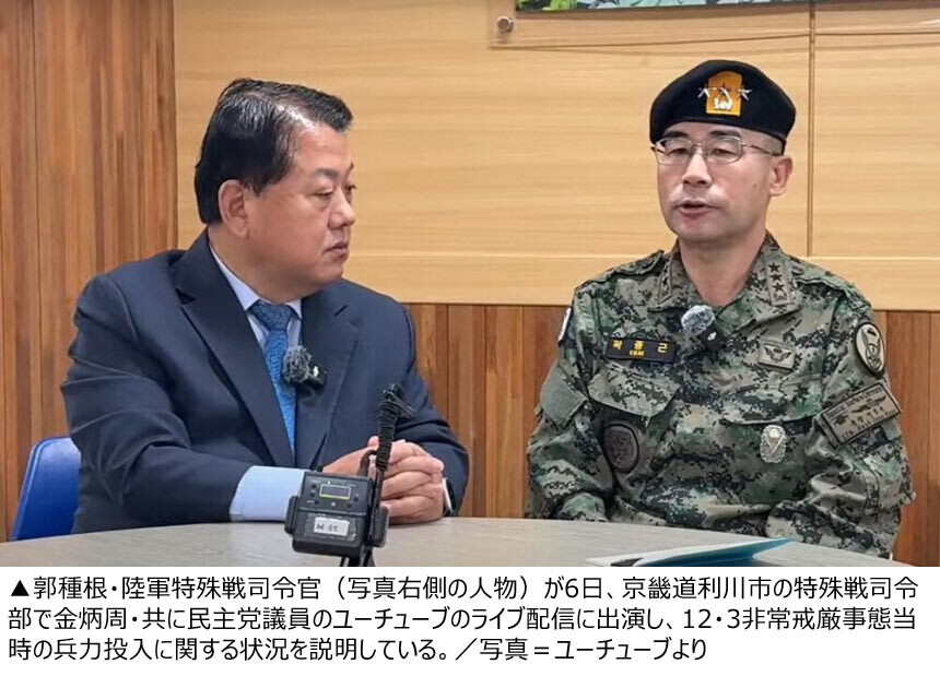 こうした中でこれらの司令官らが6日、進歩(革新)系最大野党「共に民主党」の議員が動画共有サービス「ユーチューブ」に開設している個人チャンネルのライブ配信に出演して「わたしは知らなかった」「長官の指示に従った」と言い、自らの責任は大きくないという釈明を行った。韓国軍関係者は「非常戒厳の余波で軍組織全体が崩れつつあるように見え、惨憺たる思い」と語った。