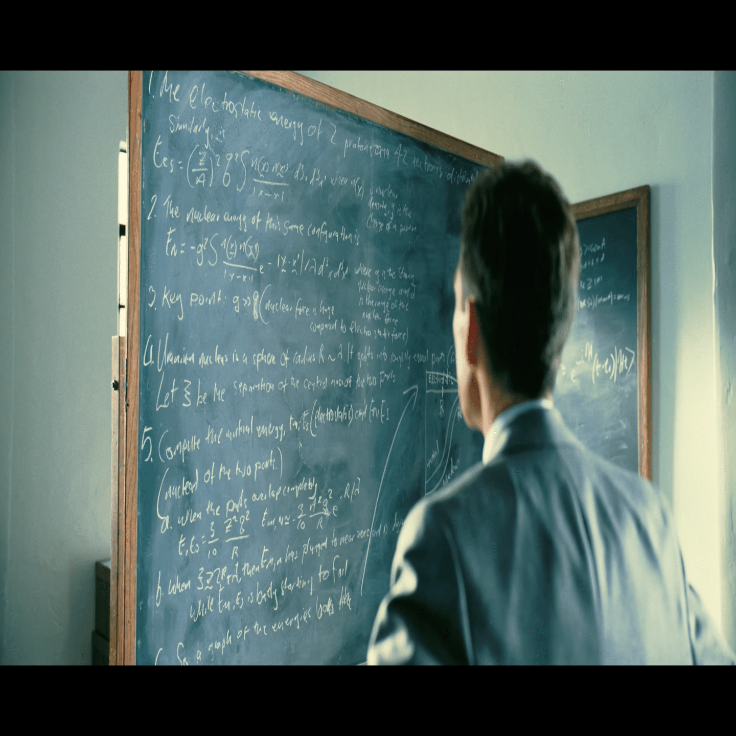 ロス・アラモスに参加したエドワード・テラー(演ベニー・サフディ:テラーは後に水爆の父と呼ばれる人物)が【核の連鎖反応理論】を発見する。この理論通りになったら、たった一発の核爆弾で地球の大気が全て燃え移り、文字通り「世界は核の炎に包まれる」ことになる。