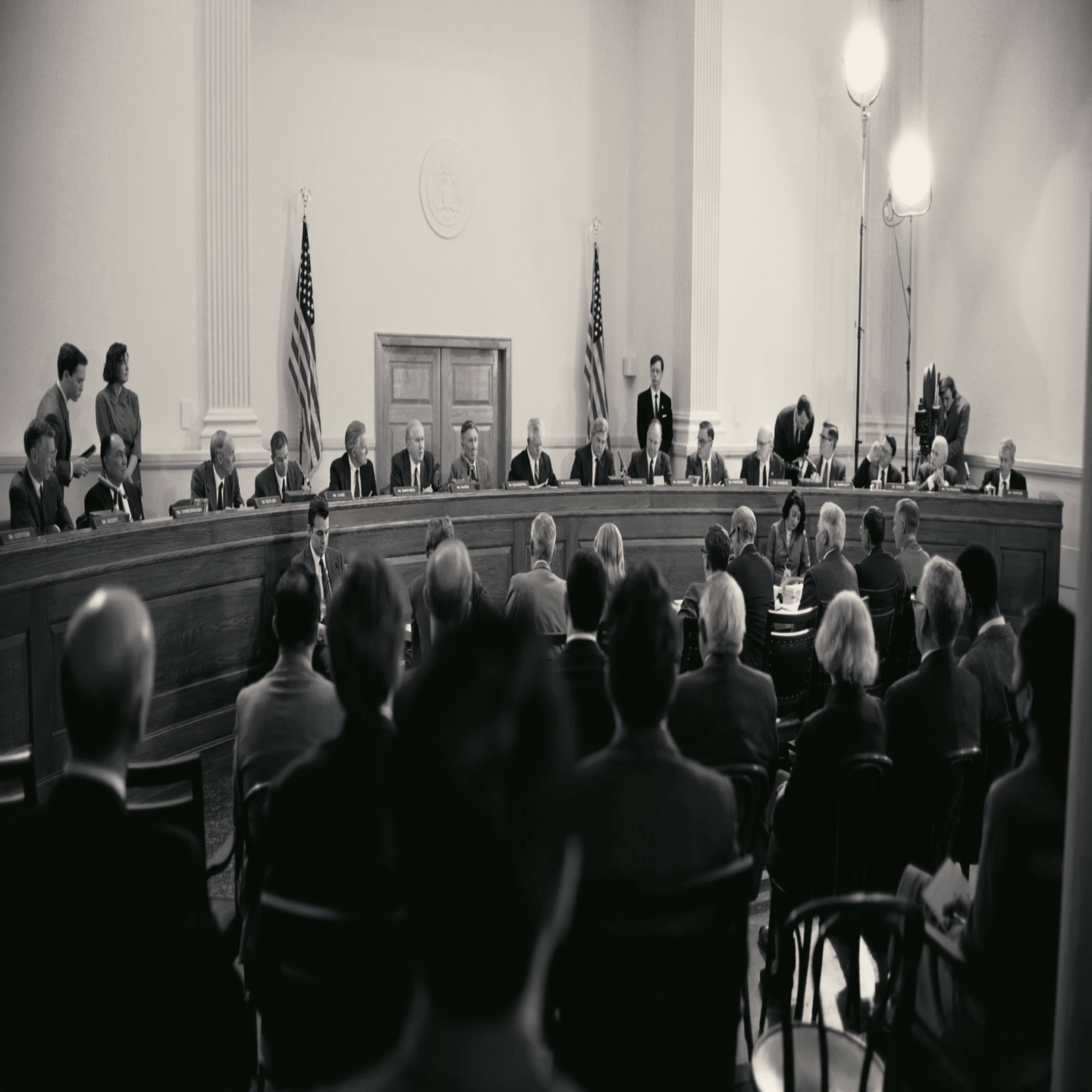 ●公聴会(アメリカ議会議事堂の公聴室で)