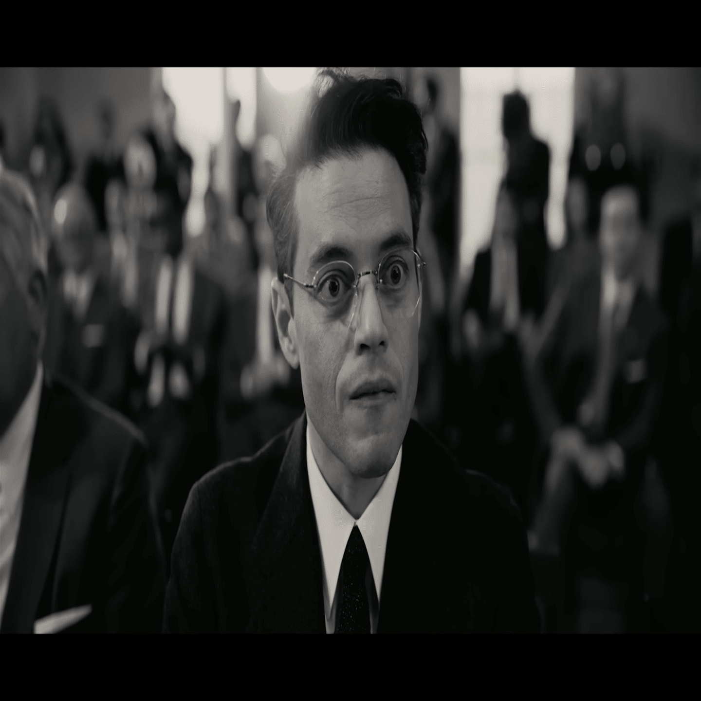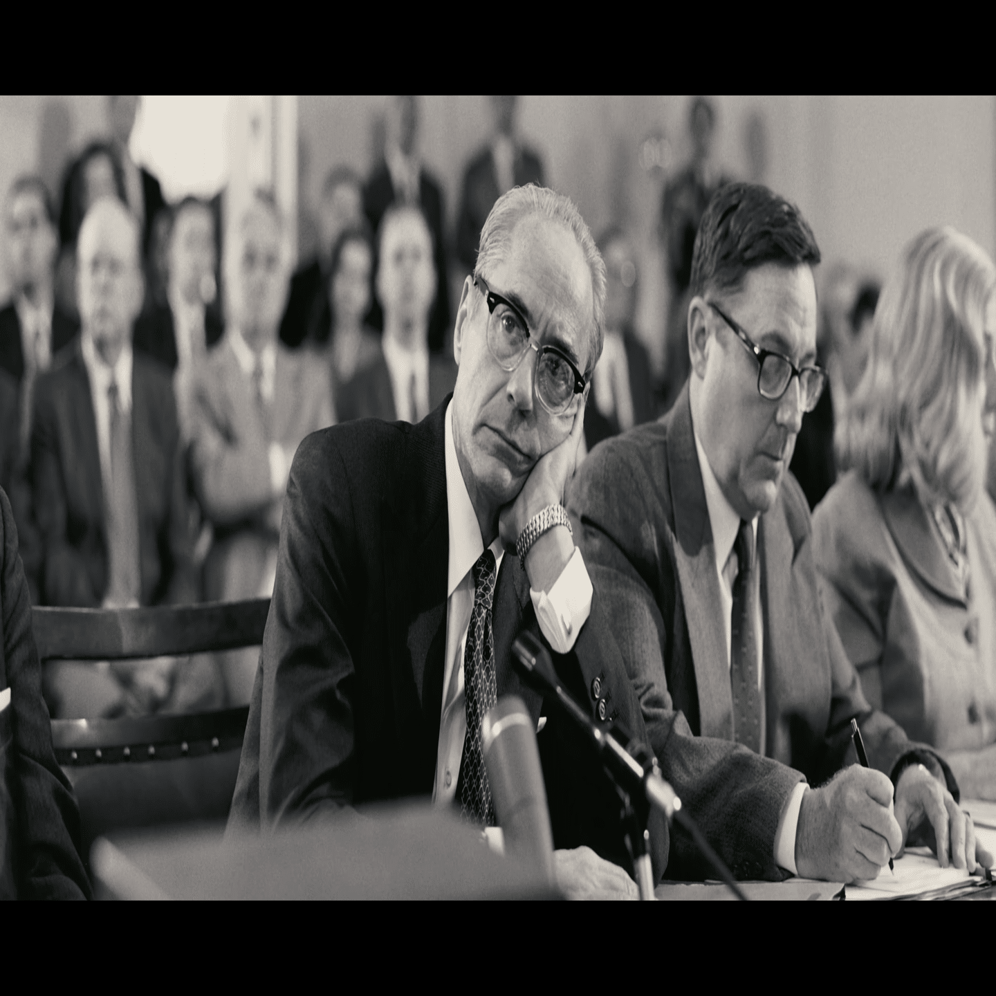 委員会が招集したシカゴ派の科学者デヴィッド・ヒル(演ラミ・マレック)が、ストローズは商務長官に相応しくないと証言する。理由は1948年のアイソトープ輸出時の公聴会でオッペンハイマーに馬鹿にされたことをストローズはずっと根に持って、1954年にオッペンハイマーの社会的地位を破壊したと多くの科学者が考えているからであると。その一件以降もストローズの言動は政治的なアクションに満ちていたと。公聴会は騒然となる。