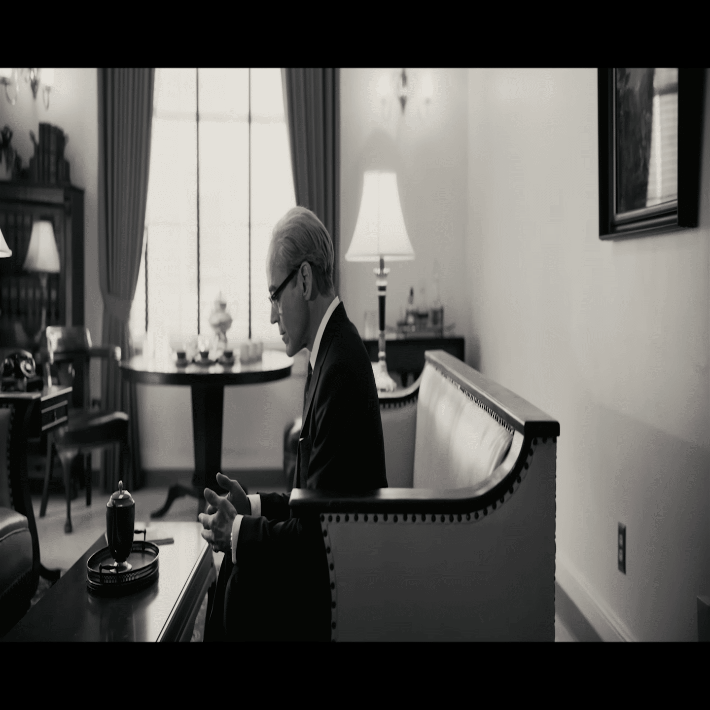 10月。功績が認められてトルーマン大統領(演シークレットゲスト!)と面会するも弱気な発言を繰り返し、ロス・アラモスは閉鎖して土地を原住民に返却しますとまで言い放ち大統領の不評を買ってしまう。更にダメ押しで「手に血がついた気持ちです」と心境を吐露するも、大統領から「被曝者は開発者のことなど恨まない、恨まれるのは落とすと決めた私だ」と啖呵を切られて、そのまま面会はバッサリ中断されるのだった。