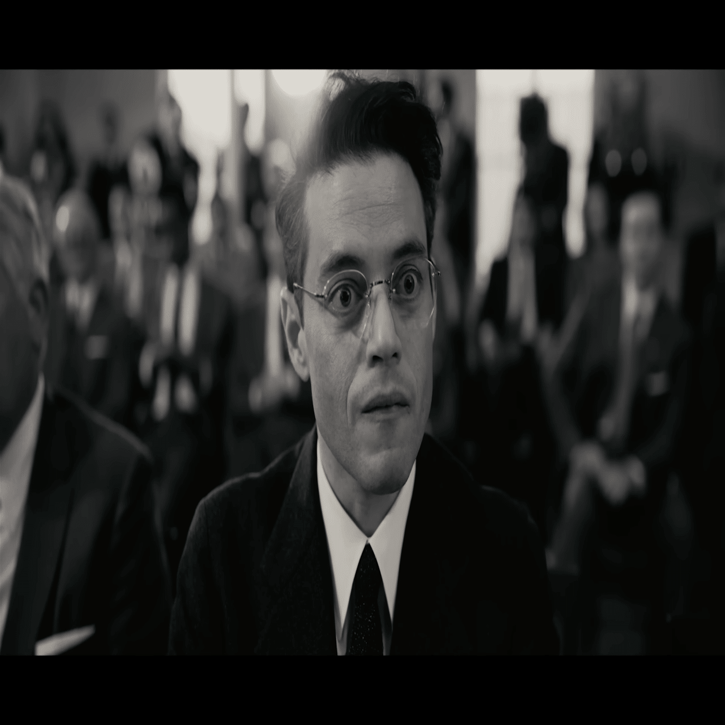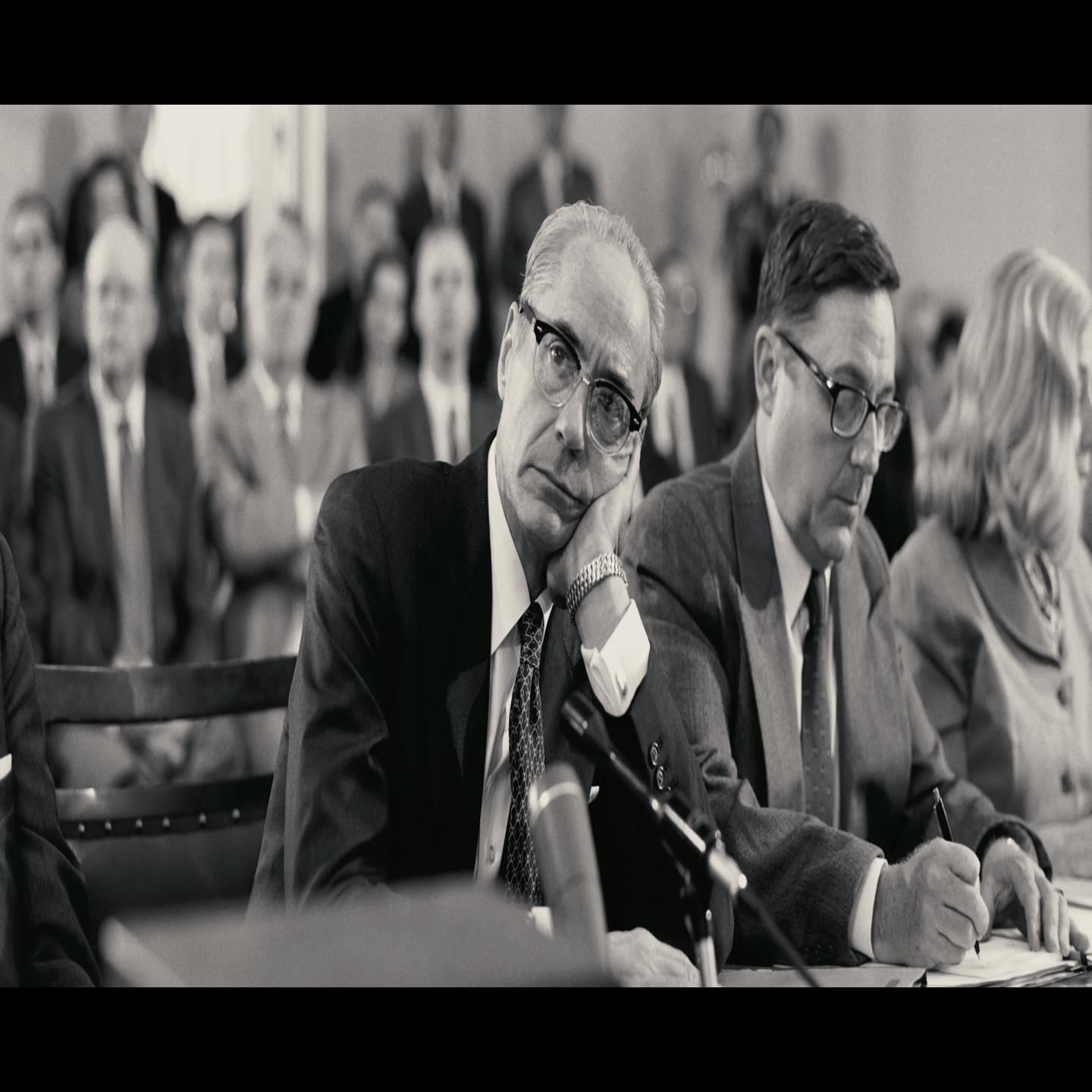 休憩中にストローズは控え室で上院補佐官にオッペンハイマーの嫌疑が深刻化したのは、マッカーシー上院議員が強行した赤狩りにボーデン(演デヴィッド・ダストマルチャン)が便乗して1954年にFBIに密告したからだと話す。