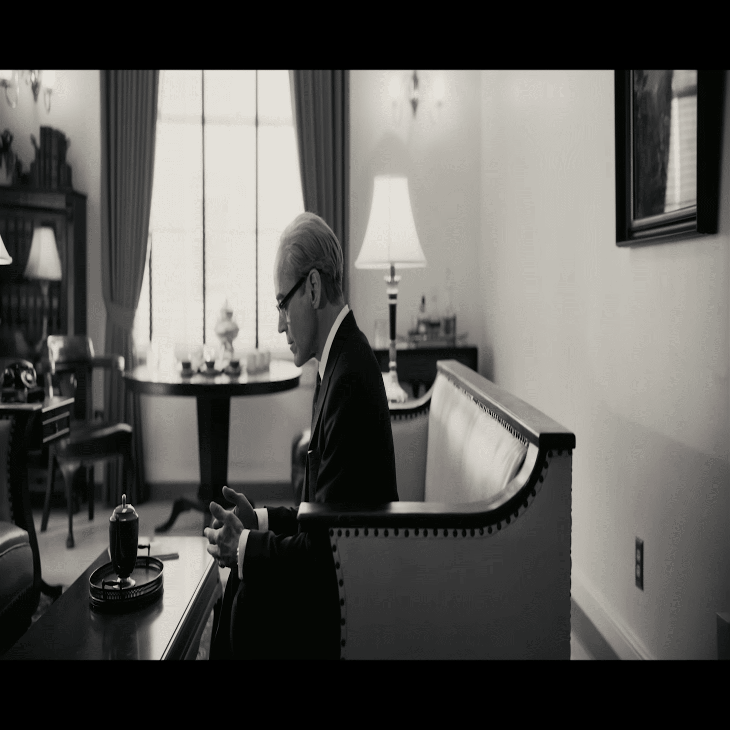 1959年、控え室でストローズが激昂している。ヒルはストローズが聴聞会を操作しことも、ボーデンに極秘資料を渡したことも証明できない。しかしこれは法廷ではないので証明する必要がない。