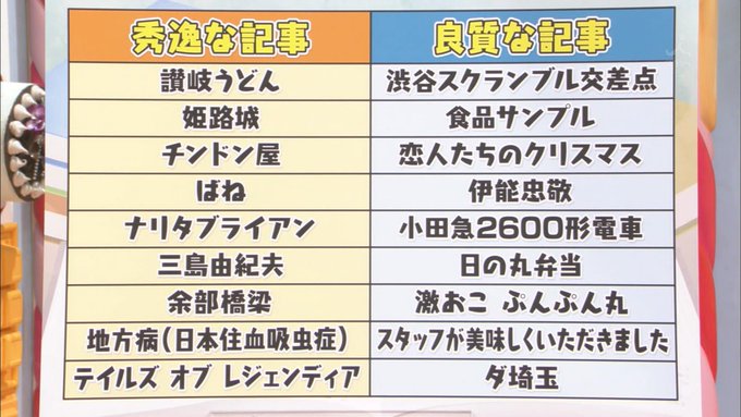 秀逸な記事、良質な記事の一覧。