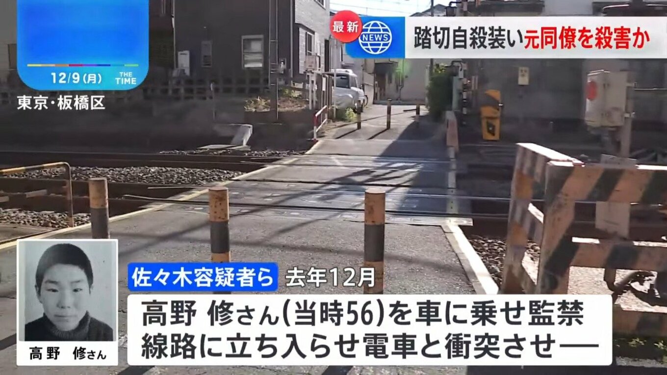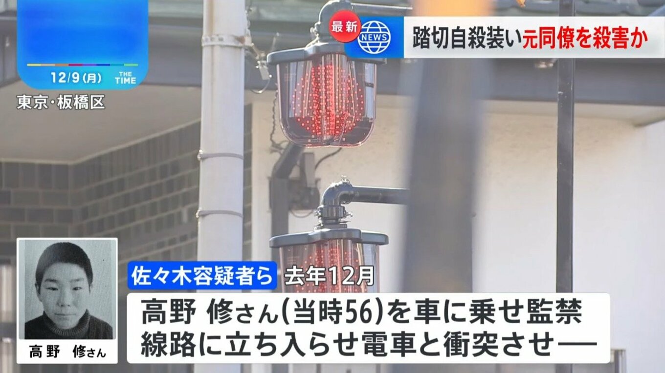 会社の元同僚を線路に立ち入らせ、電車と衝突させ、自殺に見せかけ殺害か 塗装会社の社長ら4人を殺人・監禁疑いで逮捕 背景に日常的ないじめか 警視庁