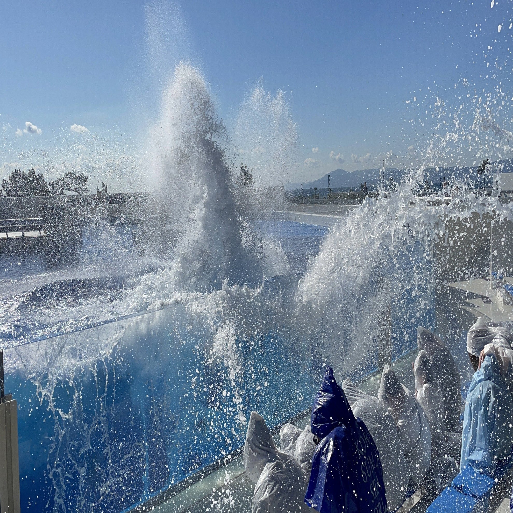 なので、シャチの迫力を間近で体験したい方は、靴までカバーできるカッパ、鞄などが入るゴミ袋を準備し防水対策を、子どもはお着替え必須です。