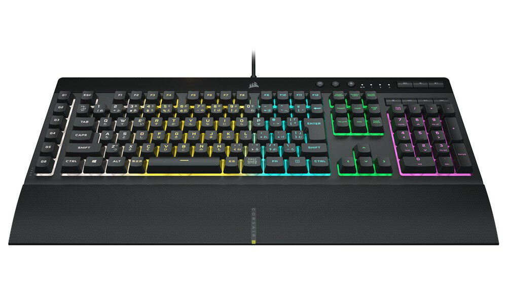 コルセア CORSAIR K55 RGB PRO ゲーミングキーボード バックライト RGB LEDブラック CH-9226765-jp K55 PRO JP 日本語配列 キーボード eスポーツ パソコン PC アクセサリ ゲーム マクロキー 防滴 静音 フルサイズ FPS TPS MMORPG クリック感 パームレスト付き楽天市場キーが光るので文字が見やすい。打鍵音は静かな方だと思います。マクロを6個登録できるので便利