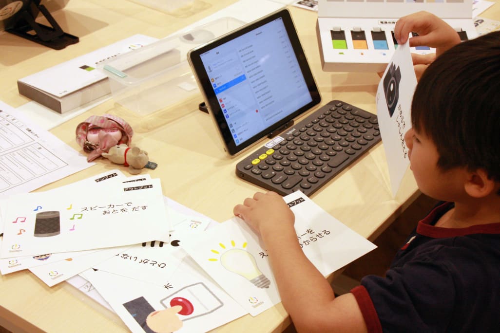 パソコンの画面の中だけの世界観にとどまらず、様々なセンサーと身の回りにあるものを組み合わせることによって、簡単に子どもたちの自由な発想、アイディアを無限に引き出します。