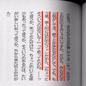 赤い下線部分が、毎日新聞が高校時代の小山田氏のいじめの記述があるとして原文を引用した箇所である。ところが実際の雑誌原文には「だからみんなわざと脱がしてさ。廊下とか歩かせたりして。」の直後に「でも、もう僕、個人的には沢田のファンだから、『ちょっとそういうのはないなー』って思ってたのね。(略)そういうのやるのは、たいがい珍しい奴っていうか、外から来た奴とかだから」と小山田氏が当時他の生徒のいじめを目撃して否定的だったことが分かる内容が続く。