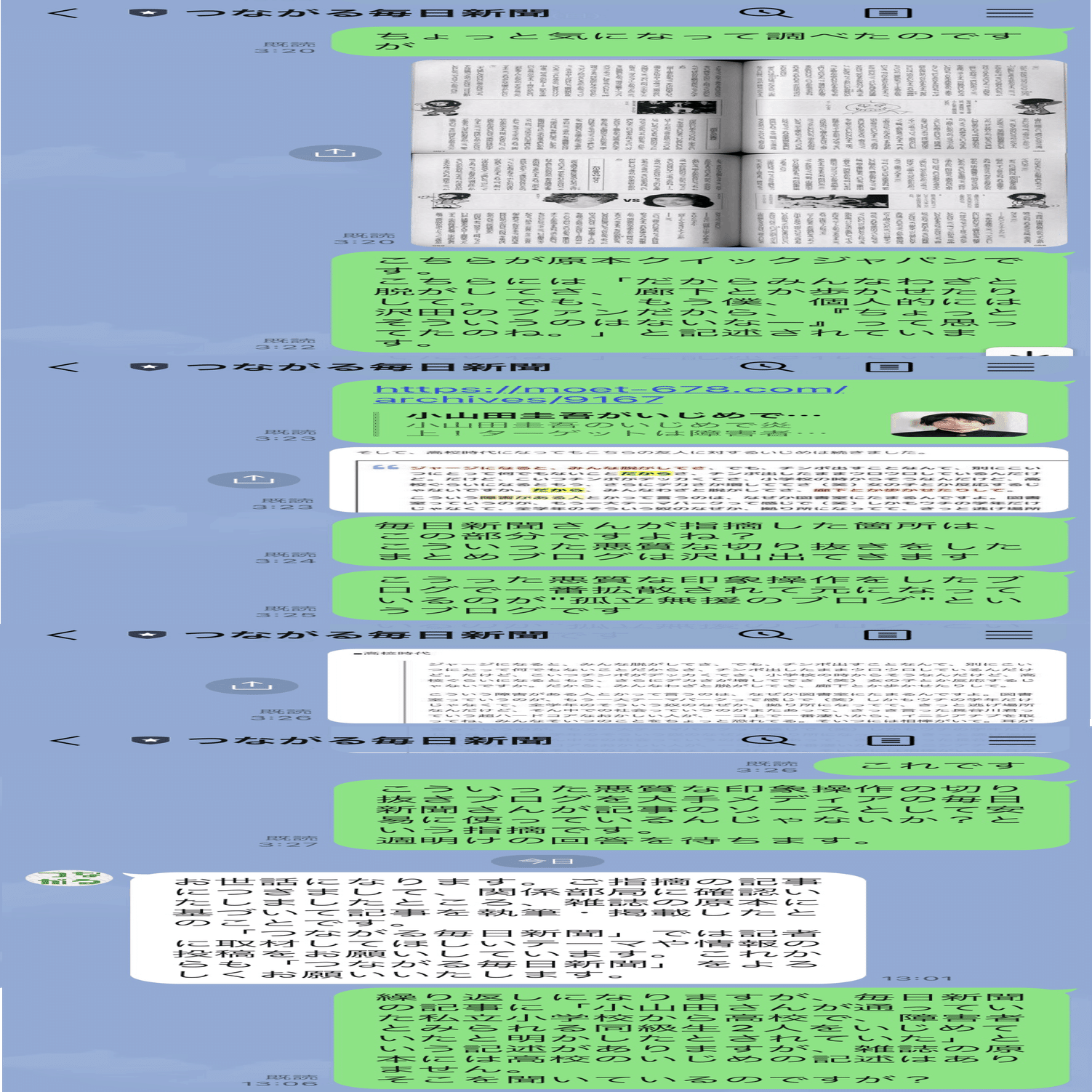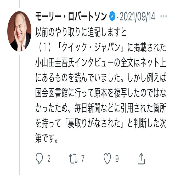再び、原本には高校時代に小山田氏がいじめをしていたという記述が無い事を聞いてみるが未だ返信はない。