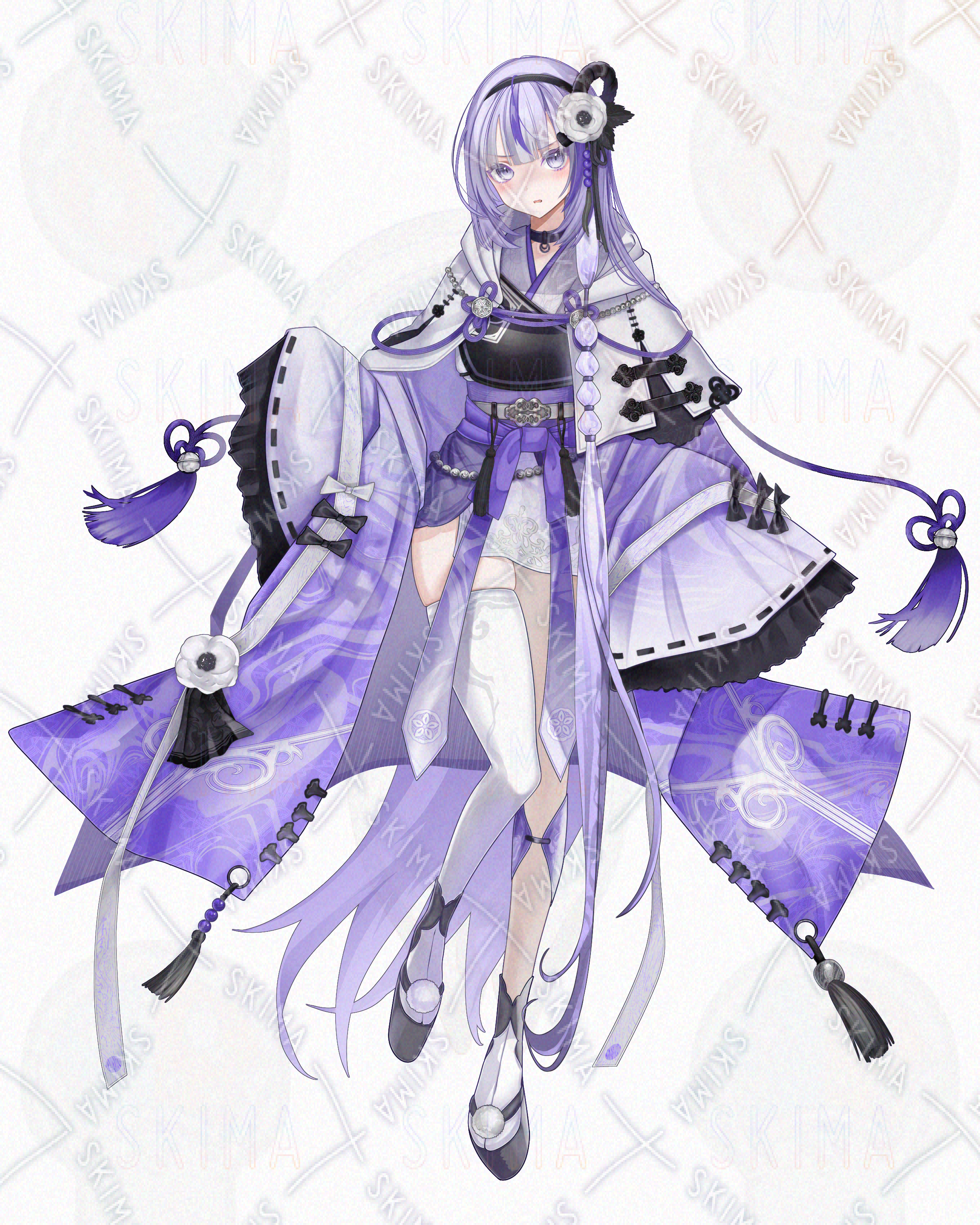 紫髪/ロングヘア/獣耳/刀/和服/着物/女性/女の子/少女/紫/白