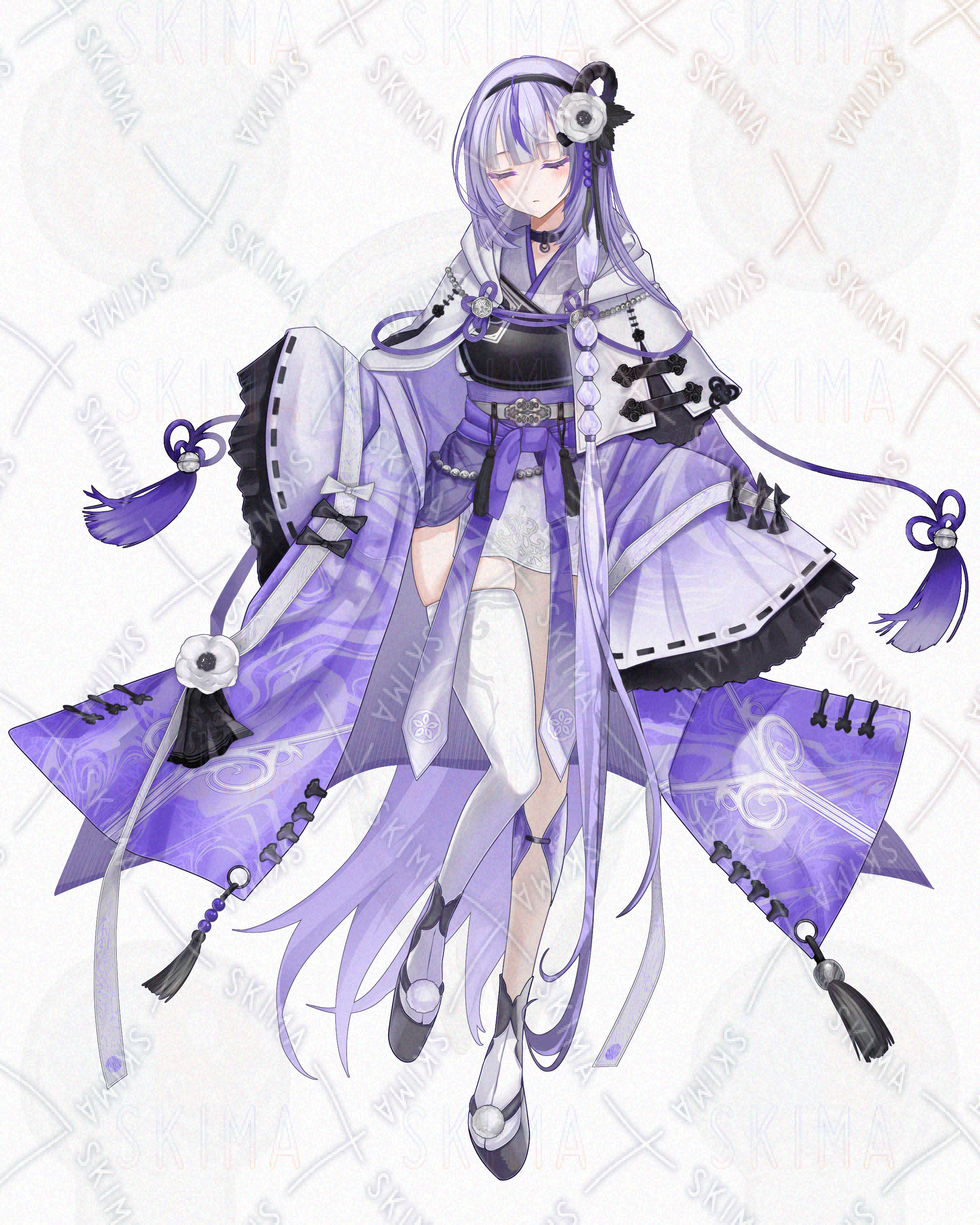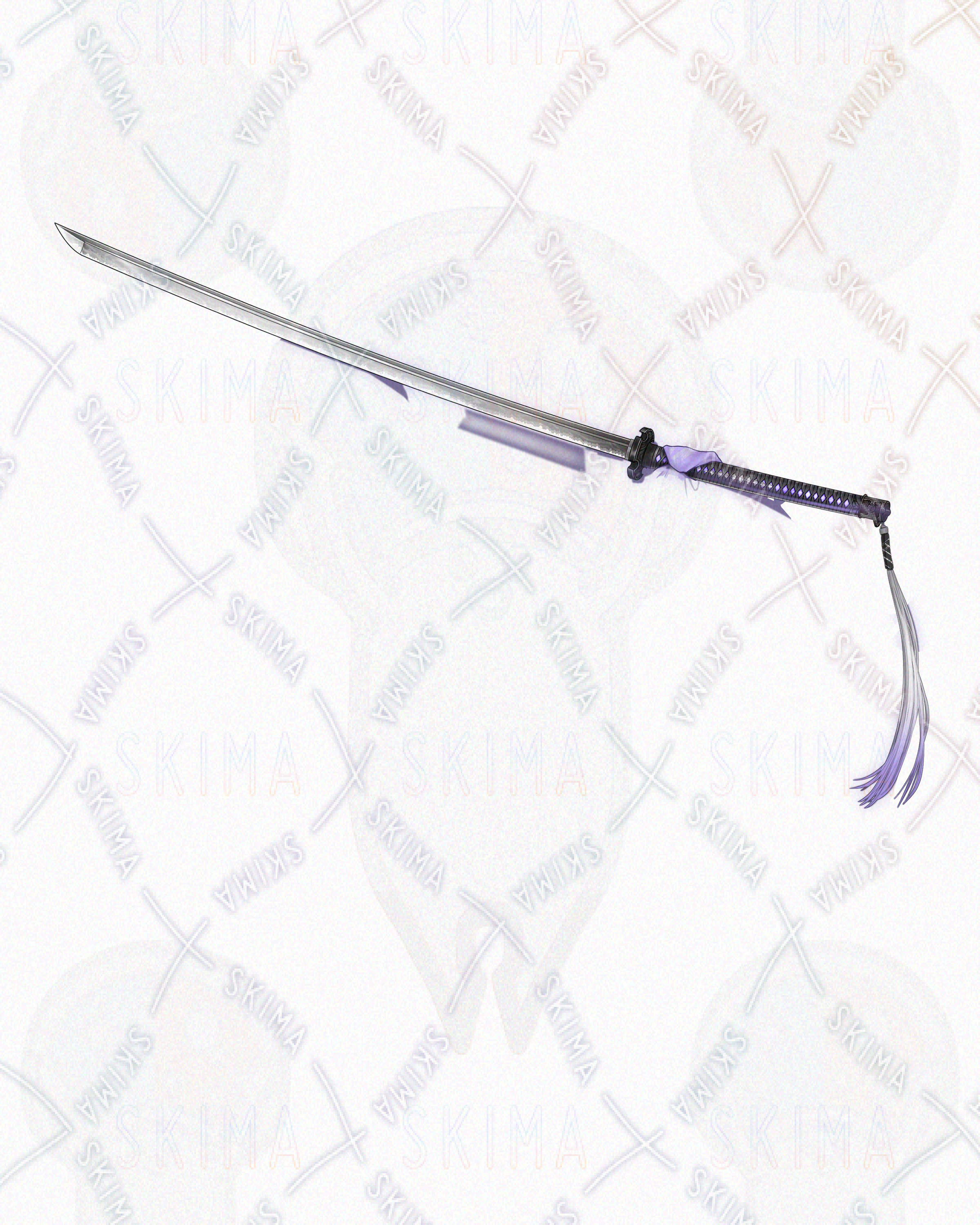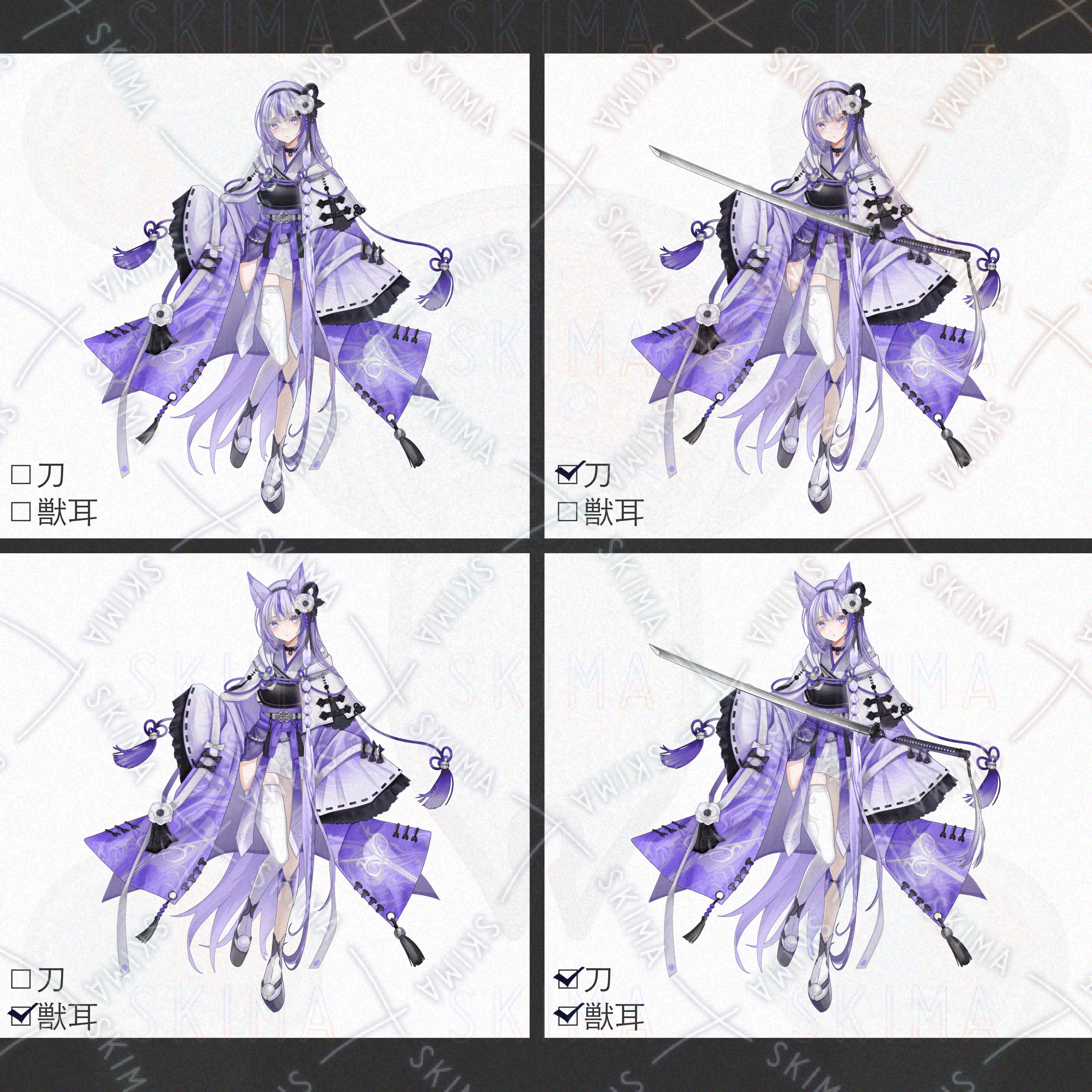 紫髪/ロングヘア/獣耳/刀/和服/着物/女性/女の子/少女/紫/白