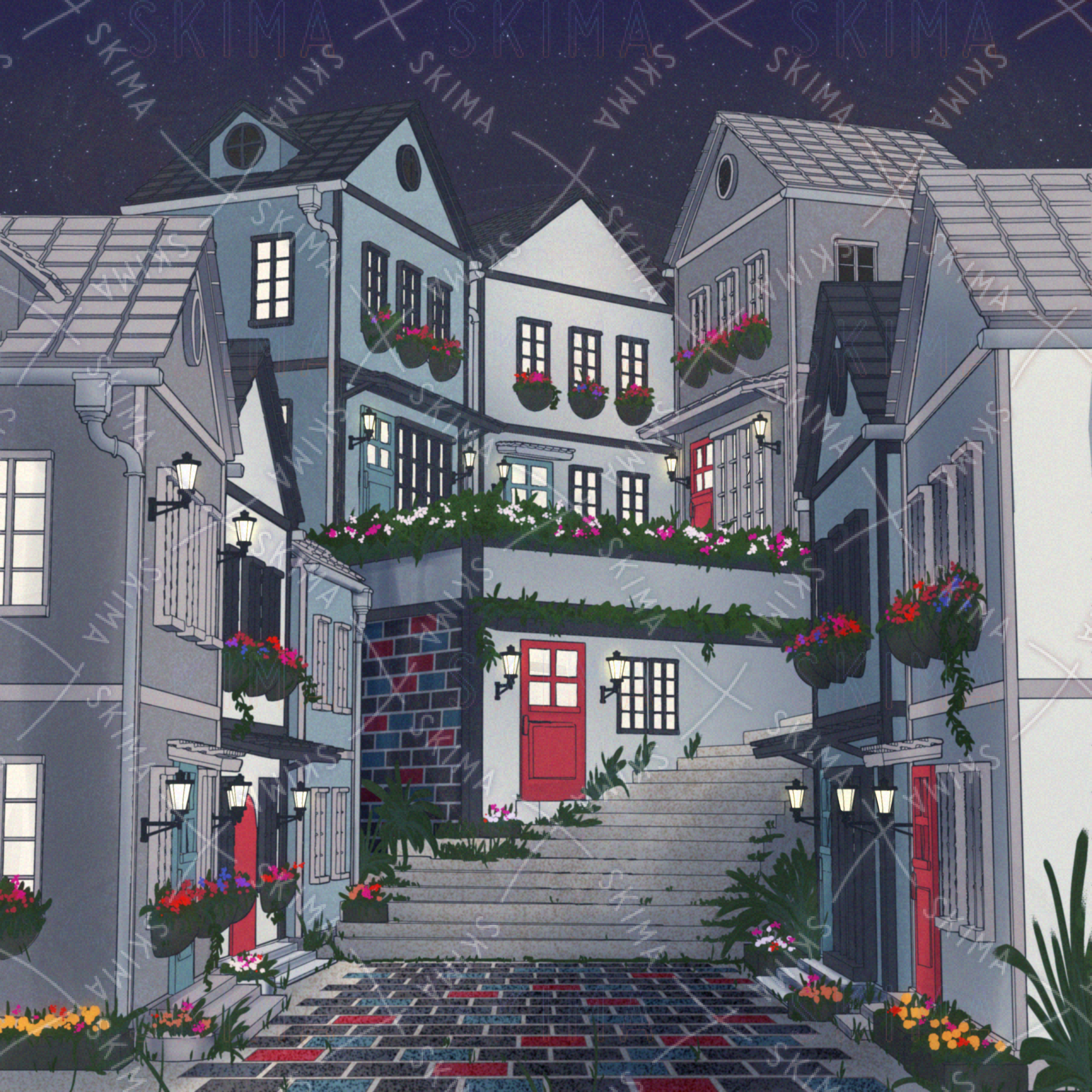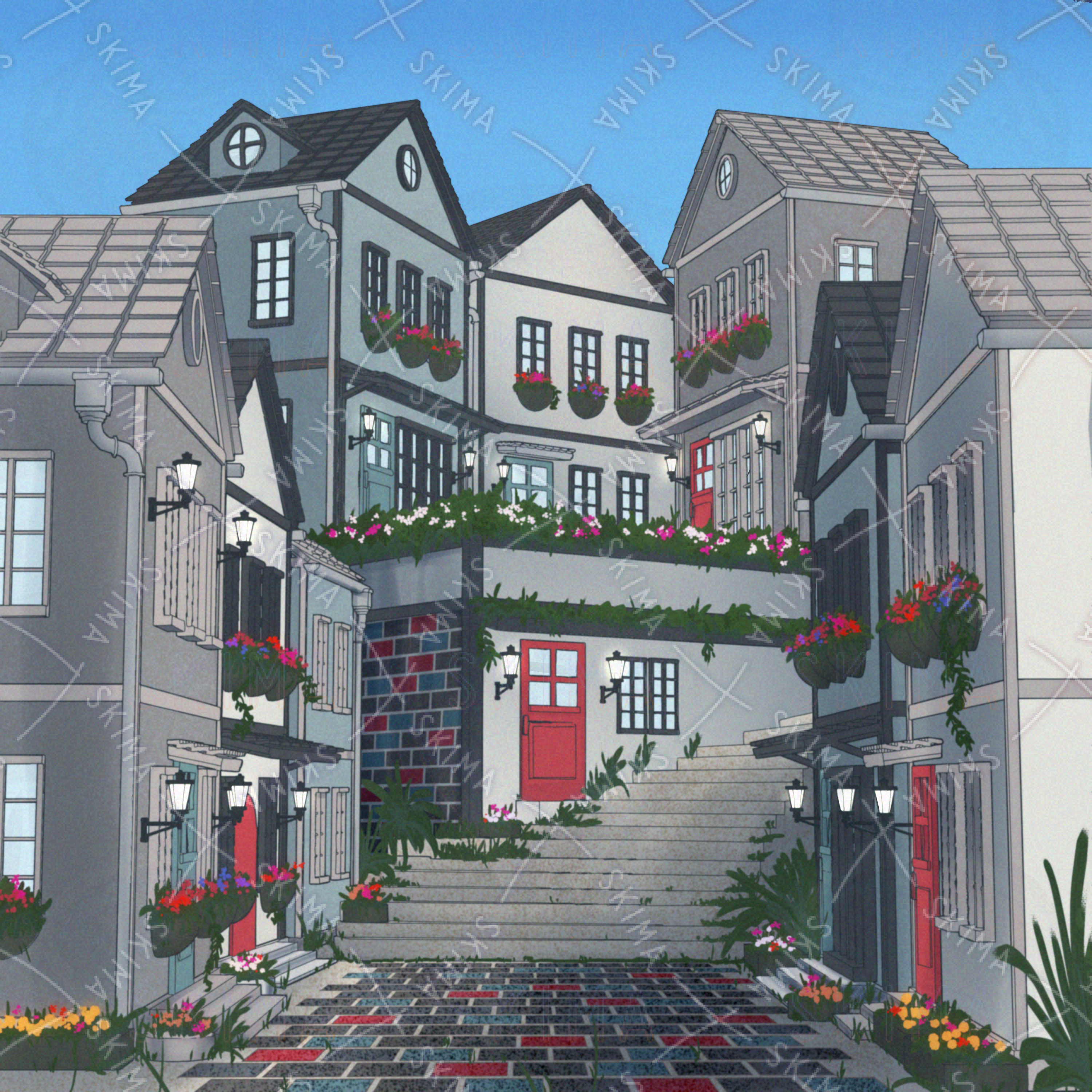 少しカラフルでヨーロッパっぽい町並みの背景です。