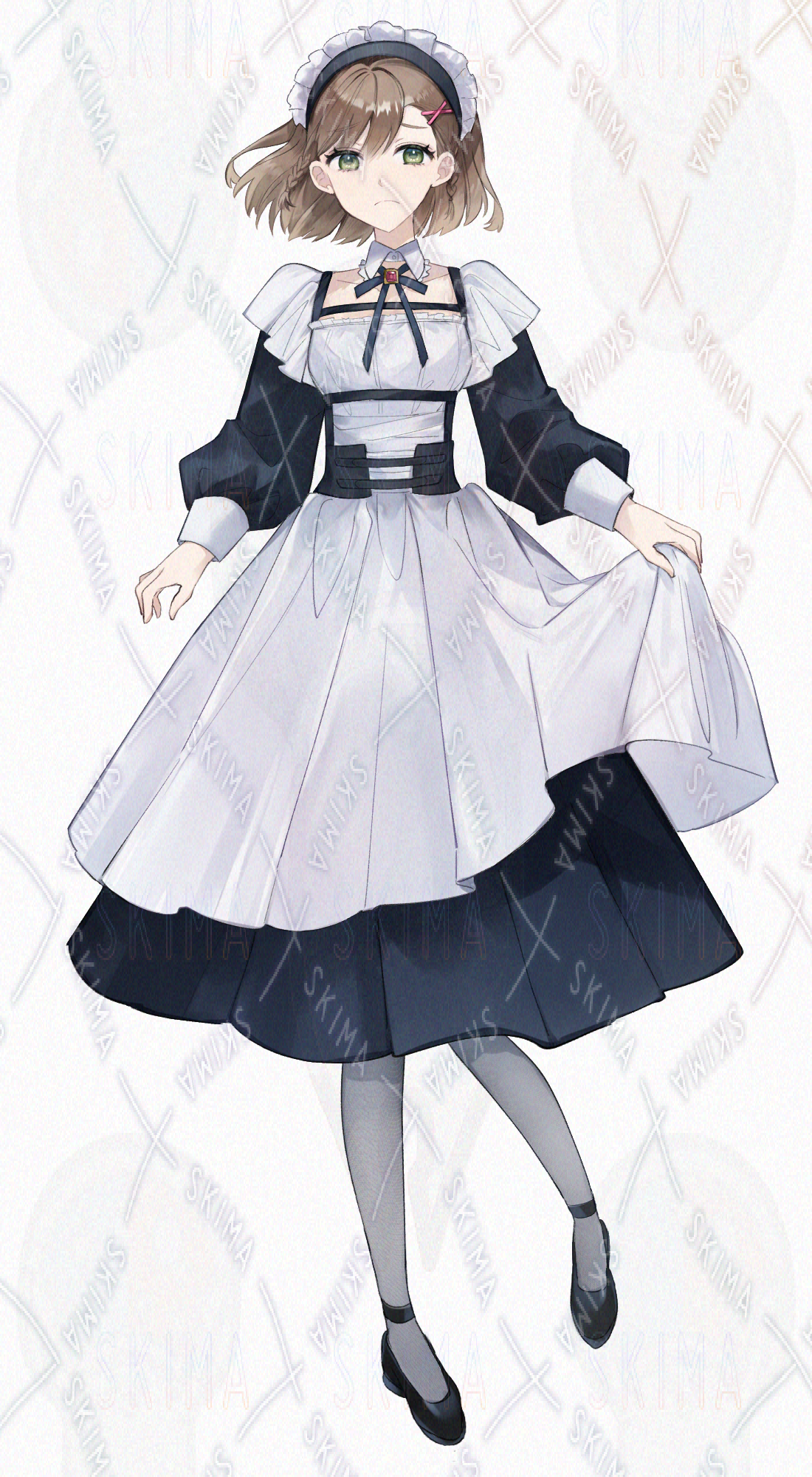 検索用:【メイド服 ロングスカート ハーネスベルト 刀 茶髪 緑目 】