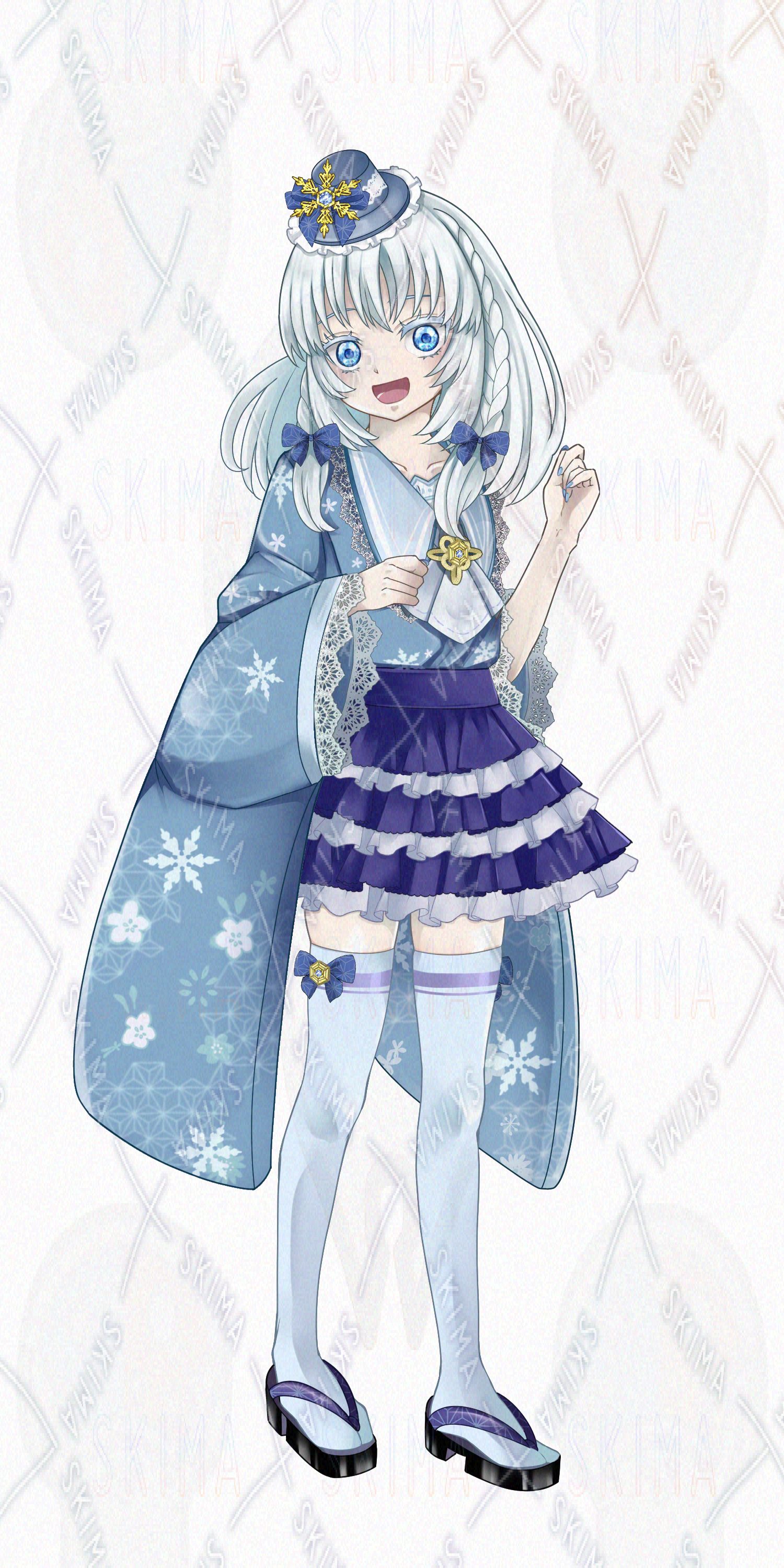 和風の服を着た銀髪の女の子