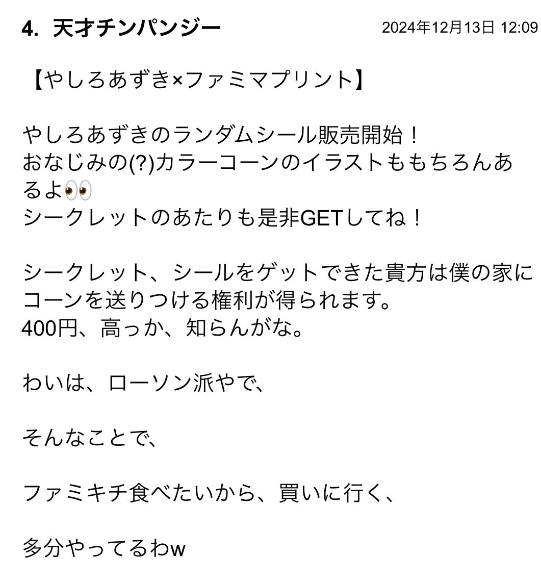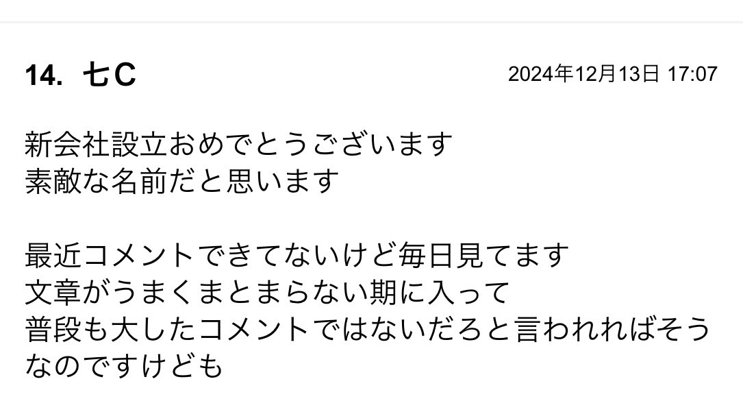 今日のコメント欄