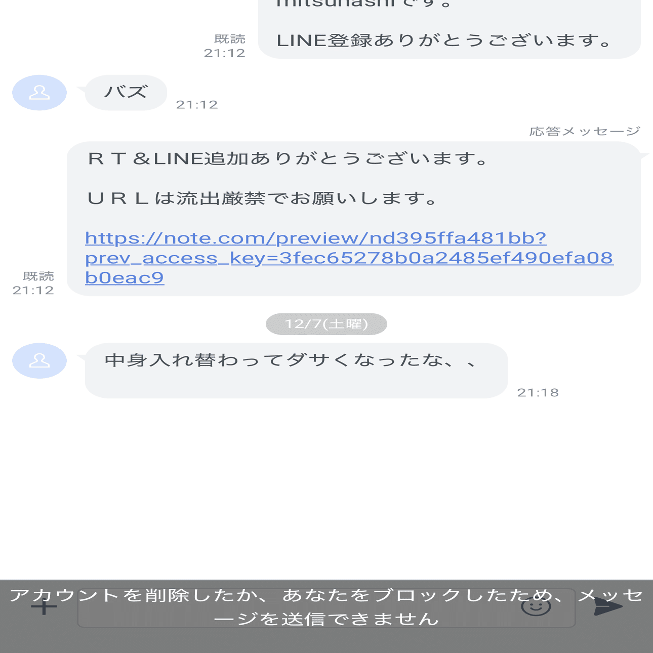 私はこの仕組みを作る中である重大なミスを犯したのです。シクリプでLINEの追加を促すはずが、その過程を省いてしまい、直接コンテンツのURLを貼ってしまったのです。