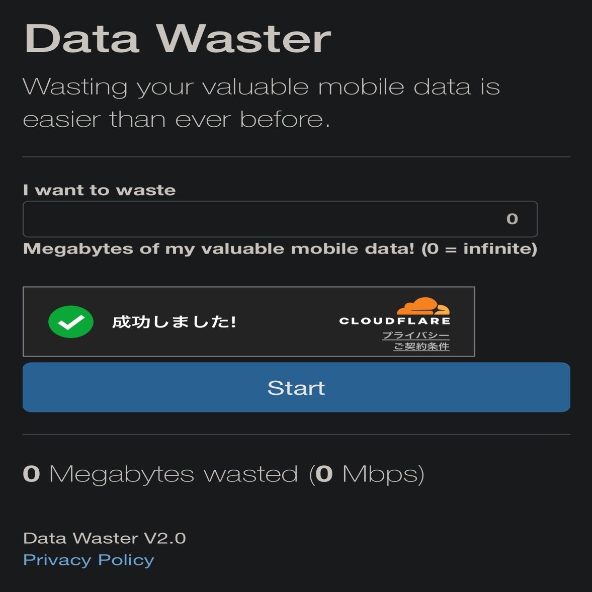 私は英語の天才だから難解なこのサイトも操作できるのですが、I want to waste(イ ワント ト ワステ)の欄に100MBと入力し、Start(スタルテ)ボタンを押すだけです。これを6日も繰り返せば完了です。これを維持期間毎月行いましょう。この内容では僕は教科書に載るような人物にはなれませんね。