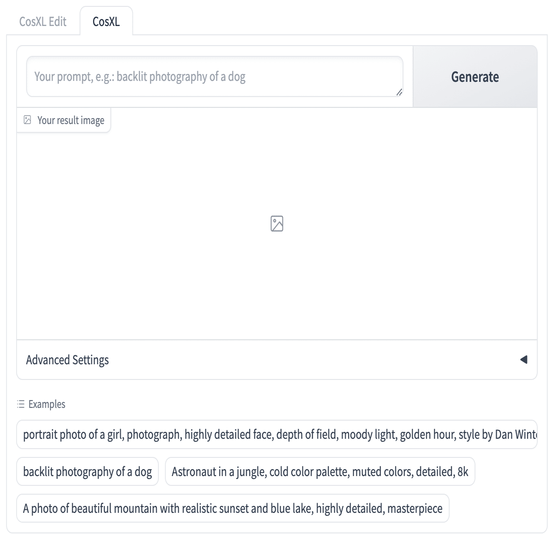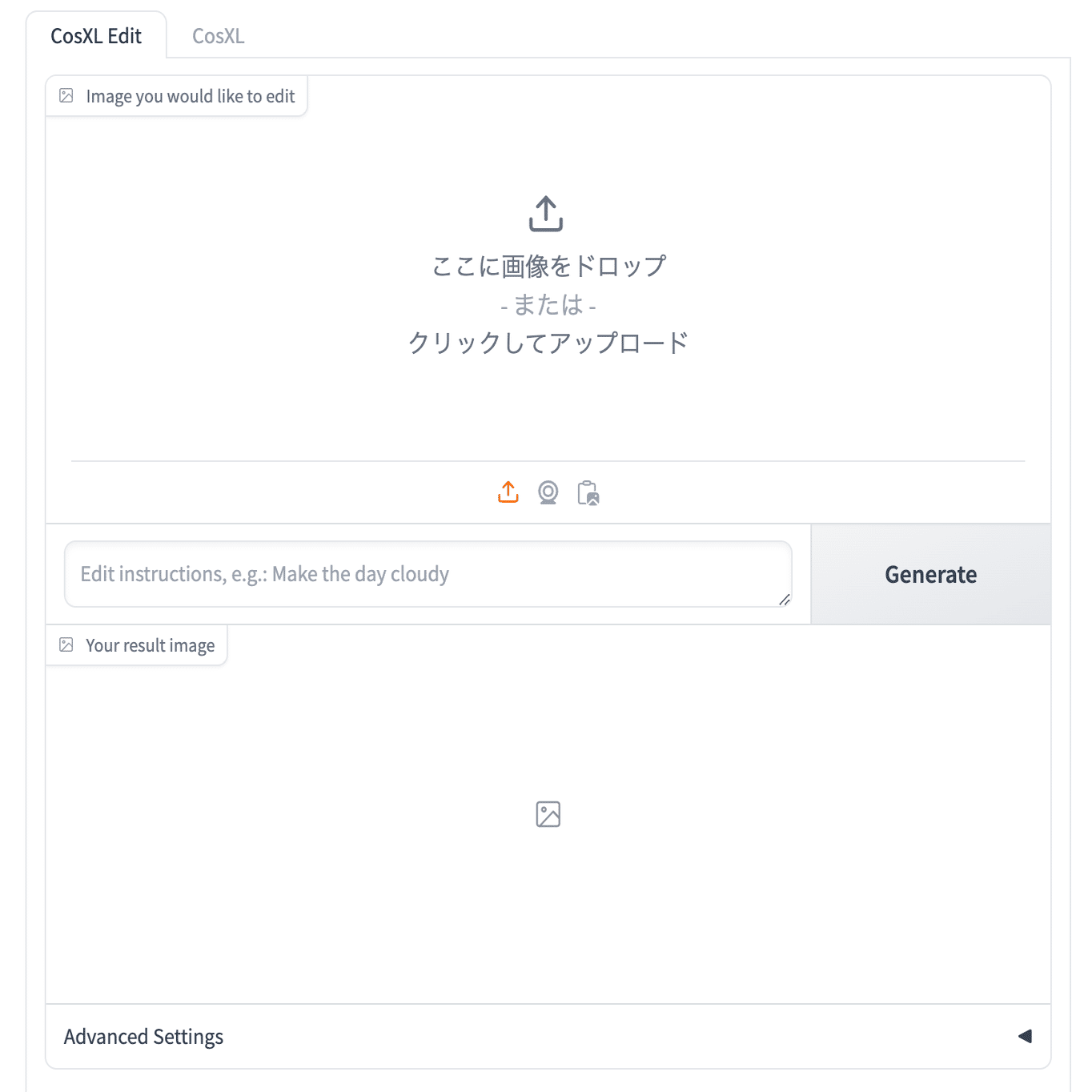 早速ですがこちらがCosXL Editの画面です。