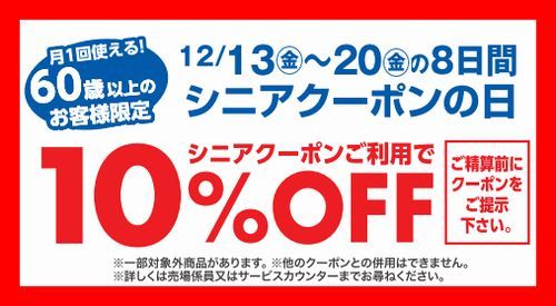 - 年内最後!シニアクーポン!