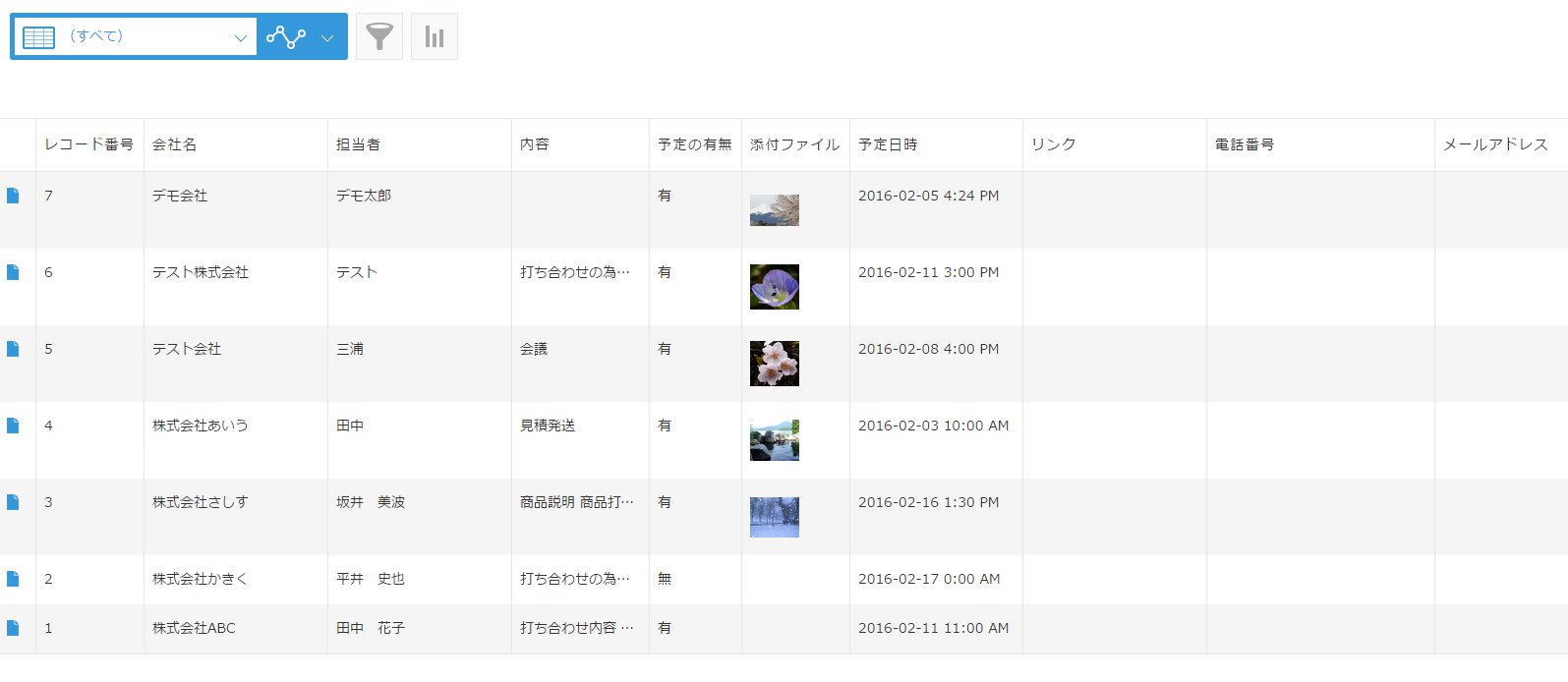 サンプルのために、このようなアプリを用意しました!(kintoneの新デザインを使用しています)